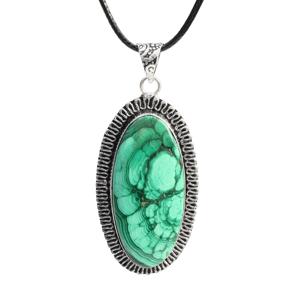 Descriere: Acest colier reglabil cu un pandantiv oval de 40mm din malachit natural este o piesa de bijuterie sofisticata si plina de semnificatie. Ideal pentru iubitorii de pietre semipretioase si pentru cei care doresc sa adauge un strop de natura si echilibru in viata lor.
