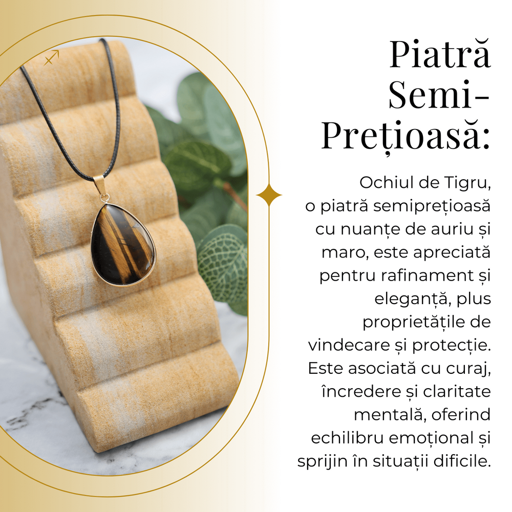 - Material: Ochi de Tigru natural și pandantiv auriu
