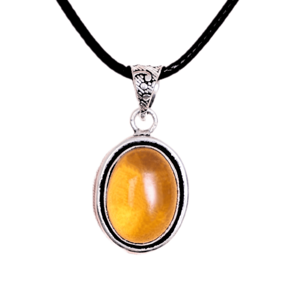 Descriere: Acest colier reglabil, cu un pandantiv oval elegant din metal argintiu încorporând un frumos Citrin natural, este un accesoriu sofisticat, ideal pentru orice garderobă.