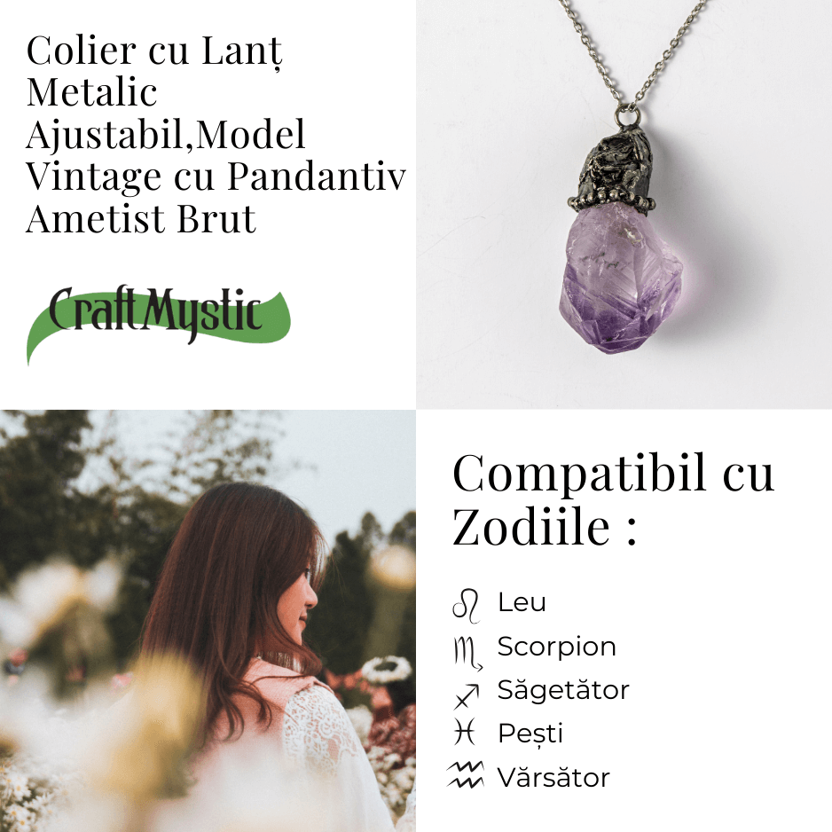 Descoperă acum protecția incredibilă și claritatea mentală oferite de ametistul brut, într-un colier vintage unic!