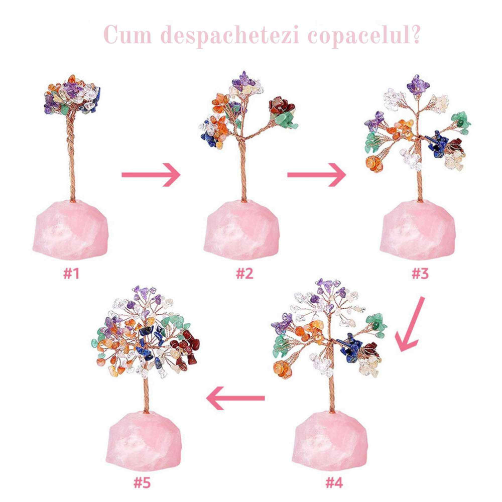 - Beneficiile Copacelului din Cristale: Cunoscut sub numele de Arborele Vietii, Lucky Tree sau Money Tree, acest copacel din cristale atrage norocul, prosperitatea si toate lucrurile bune. Fiecare dintre cele 7 pietre reprezinta o anumita chakra, ajutand la echilibrarea energiilor si la directionarea lor ascendenta in corp;