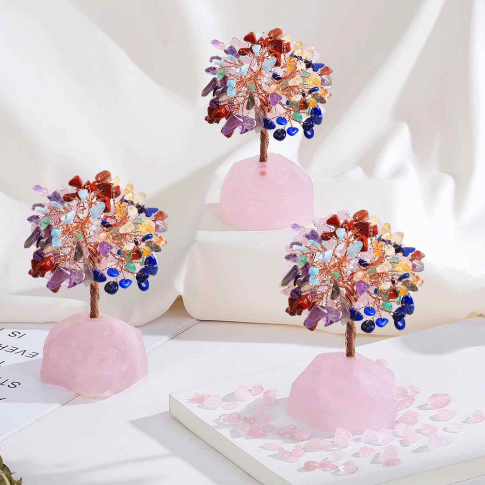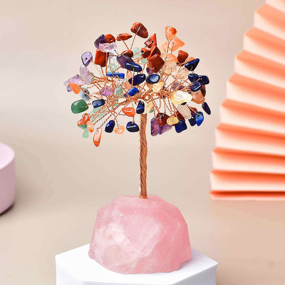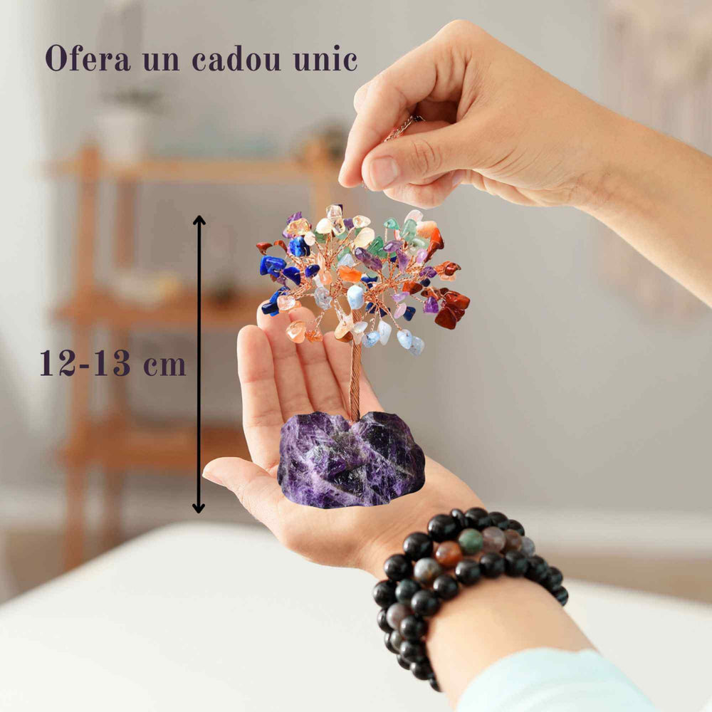 Copacel 12-13 cm din 7 pietre naturale Chakra si baza din cristal natural Ametist pentru noroc si prosperitate