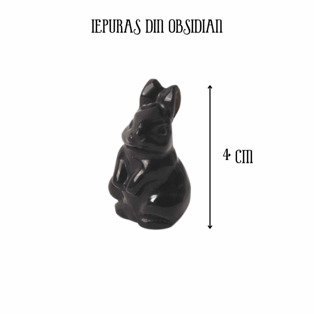 Figurina 4 cm cu forma de iepure sculptata manual din Obsidian natural - Cristale si pietre vindecatoare semipretioase cu animale