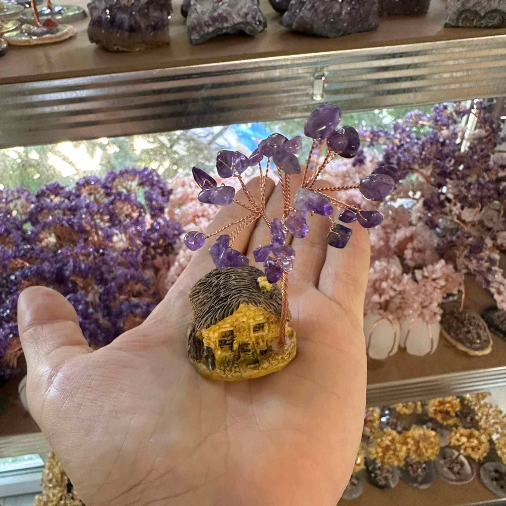Figurina casuta cu ramuri din cristale naturale Ametist