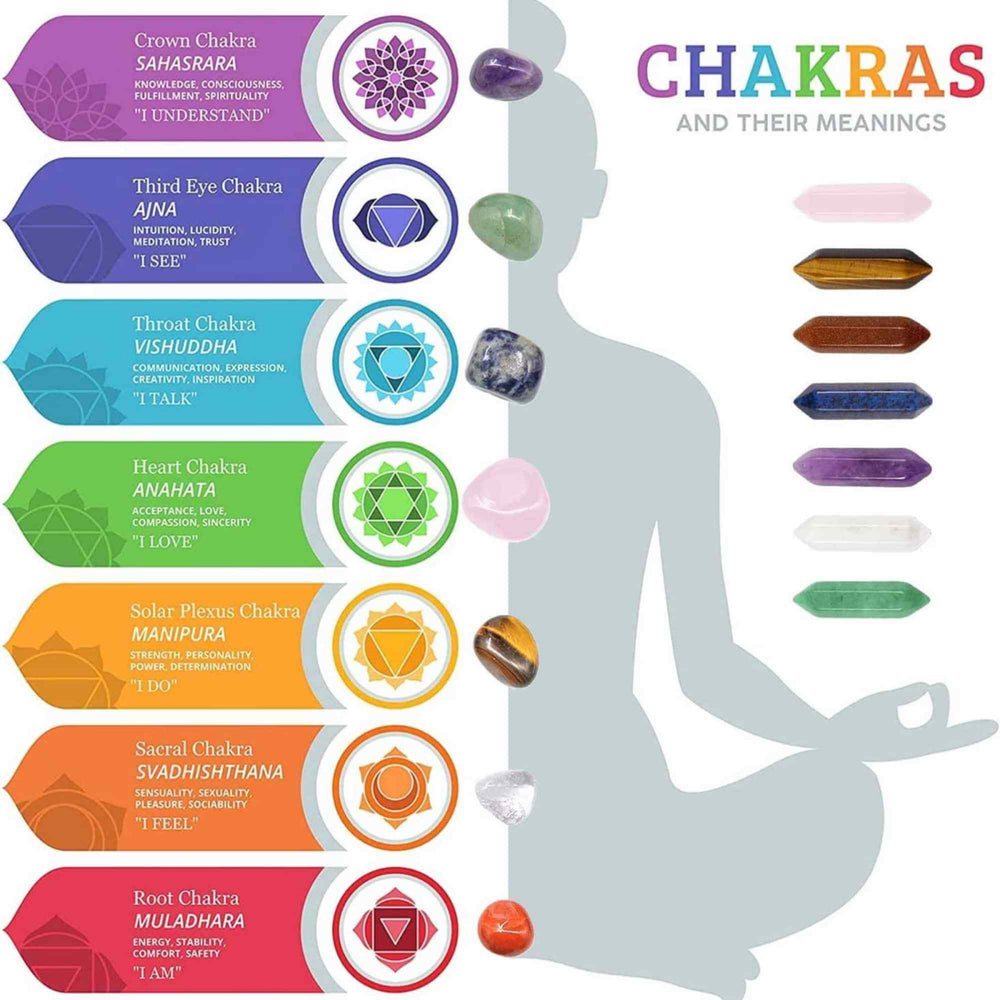 - Daca esti in cautarea unui set de cristale care sa te ajute sa-ti echilibrezi energia si sa-ti imbunatatesti starea de spirit, atunci acest set de cristale vindecatoare cu piatra chakra in cutie este exact ceea ce ai nevoie! Setul este compus din 14 bucati de cristale naturale, inclusiv 7 pietre chakra in forma de buzunar si 7 baghete duble, netede si polisate;