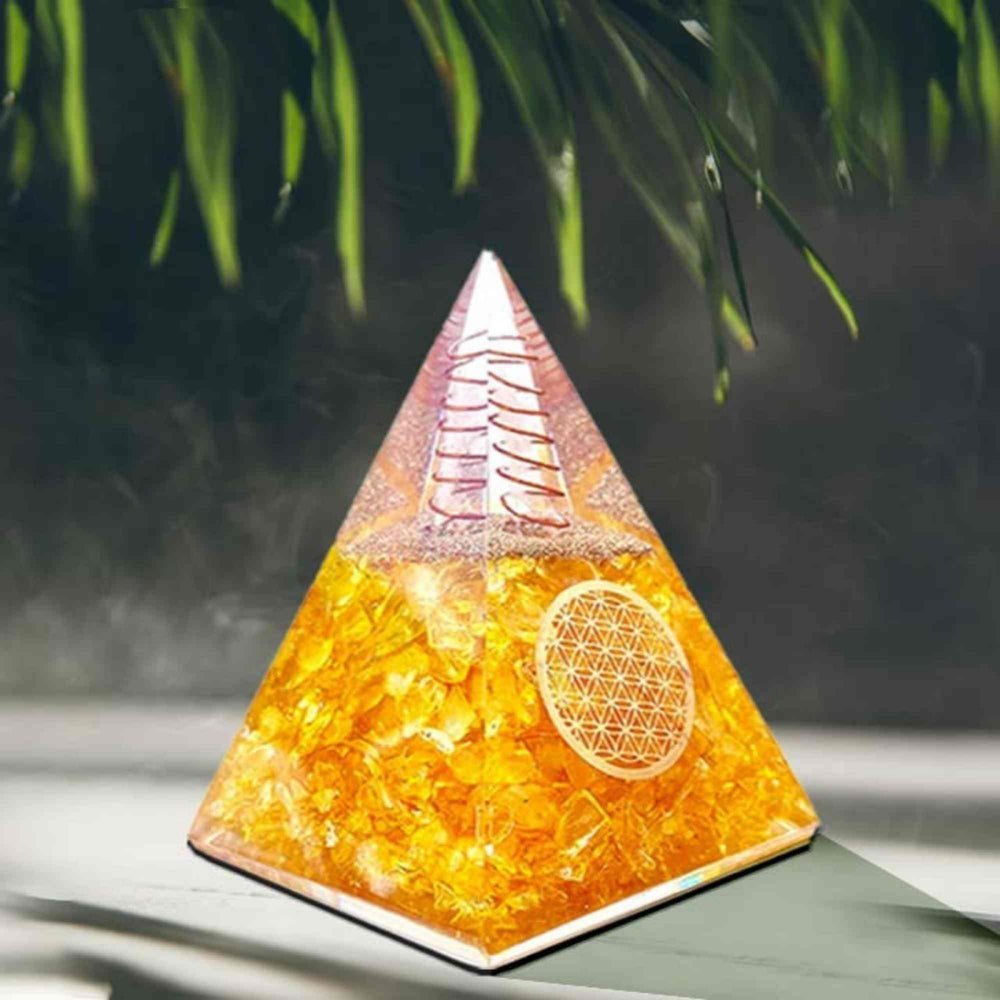 Fiind elementul central al piramidei, citrinul nu doar că atenuează mânia și aduce echilibru în viața ta, ci și sporește claritatea vederii. Beneficiind de propietățile cristalelor și pietrelor pretioase de orgon, această piatră ajută la respingerea energiilor negative și infuzează spațiul cu optimism.