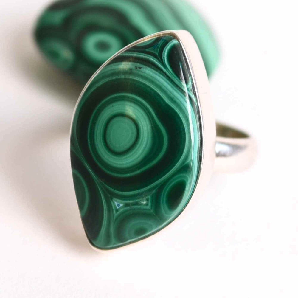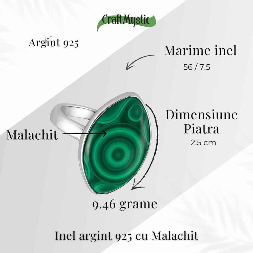 Inel din Argint 925 cu Malachit Natural 9.46 gr M56/7.5–Protectie Energetica si Echilibru Emotional pentru Transformare Interioara