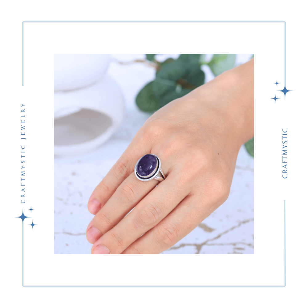 Adaugă acest inel argintiu cu Ametist oval în coșul tău de cumpărături acum și bucură-te de echilibrul emoțional și claritatea mentală pe care le poate aduce în viața ta!