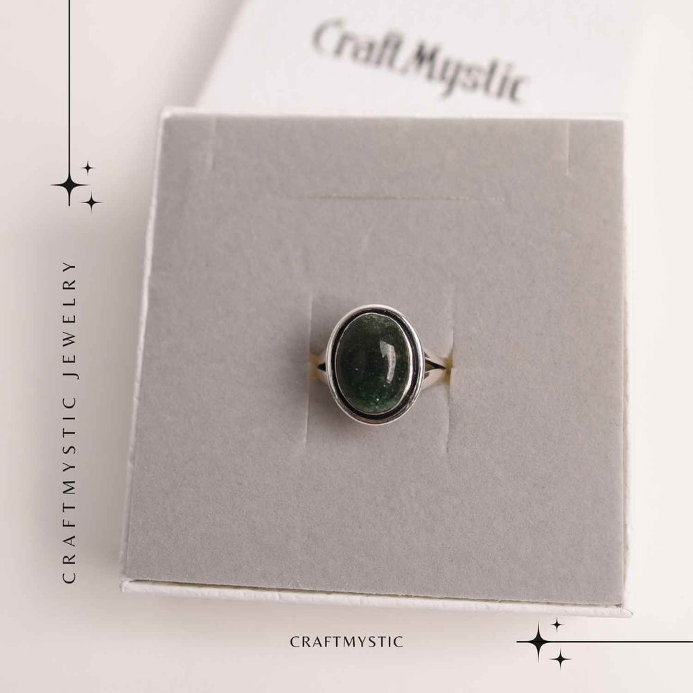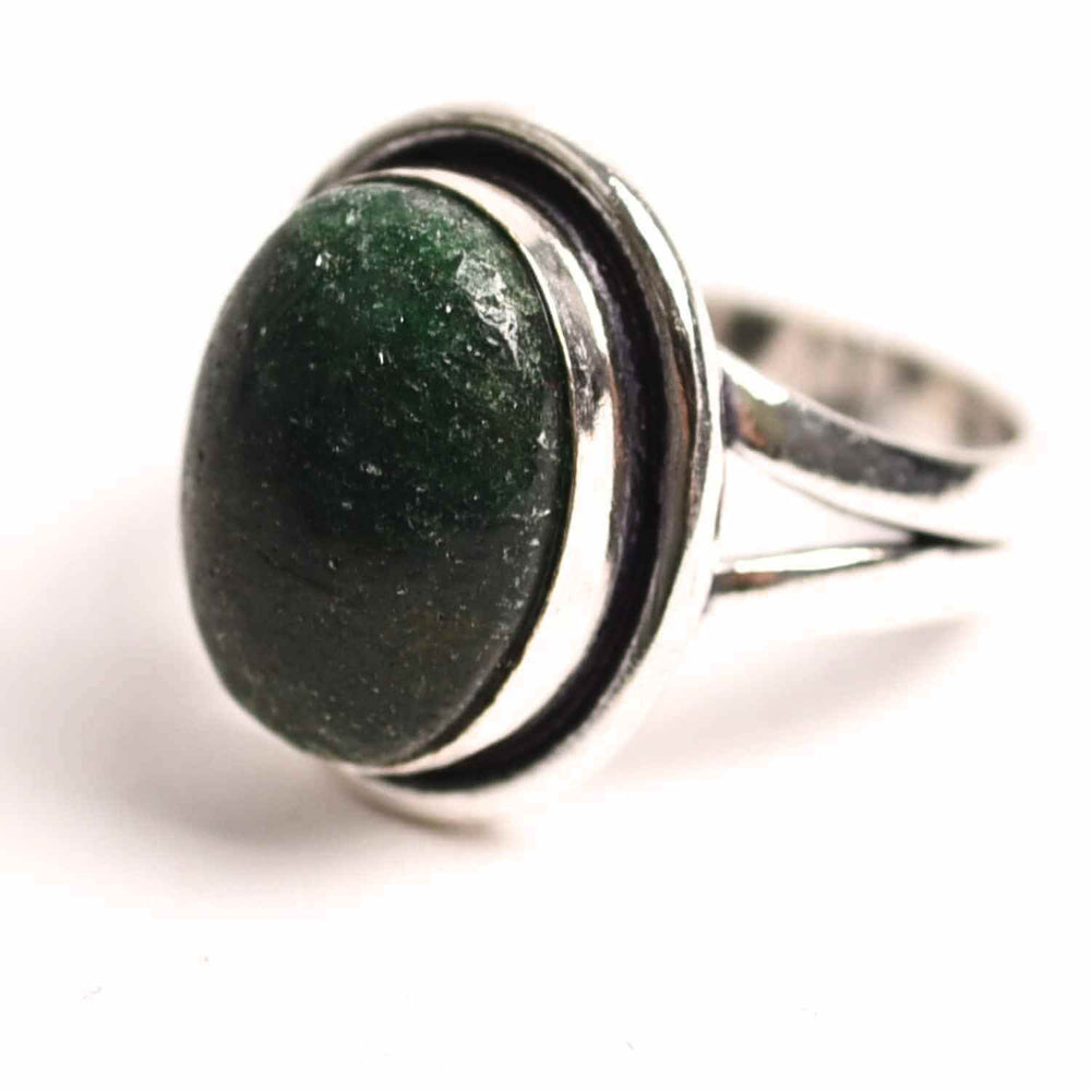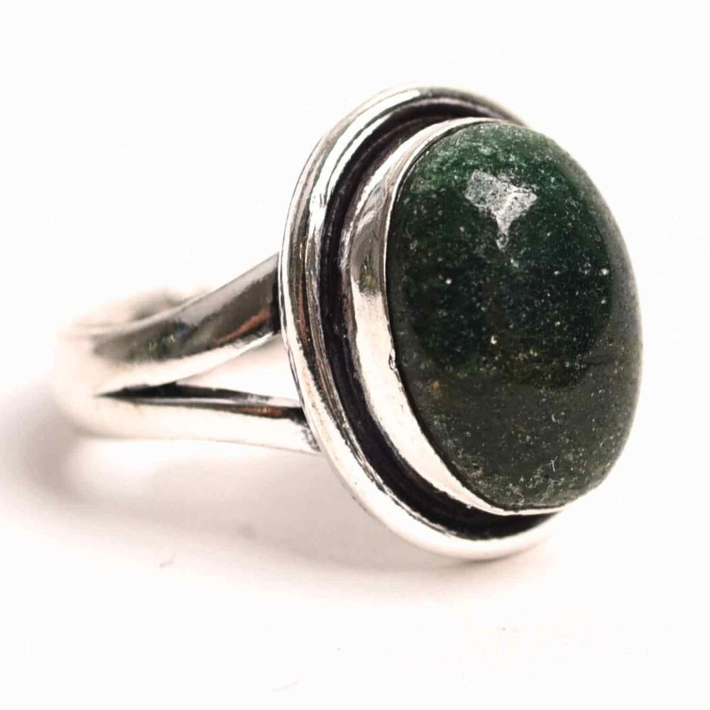 Inel Ajustabil Argintiu cu Jad Verde – Echilibru si protectie energetica