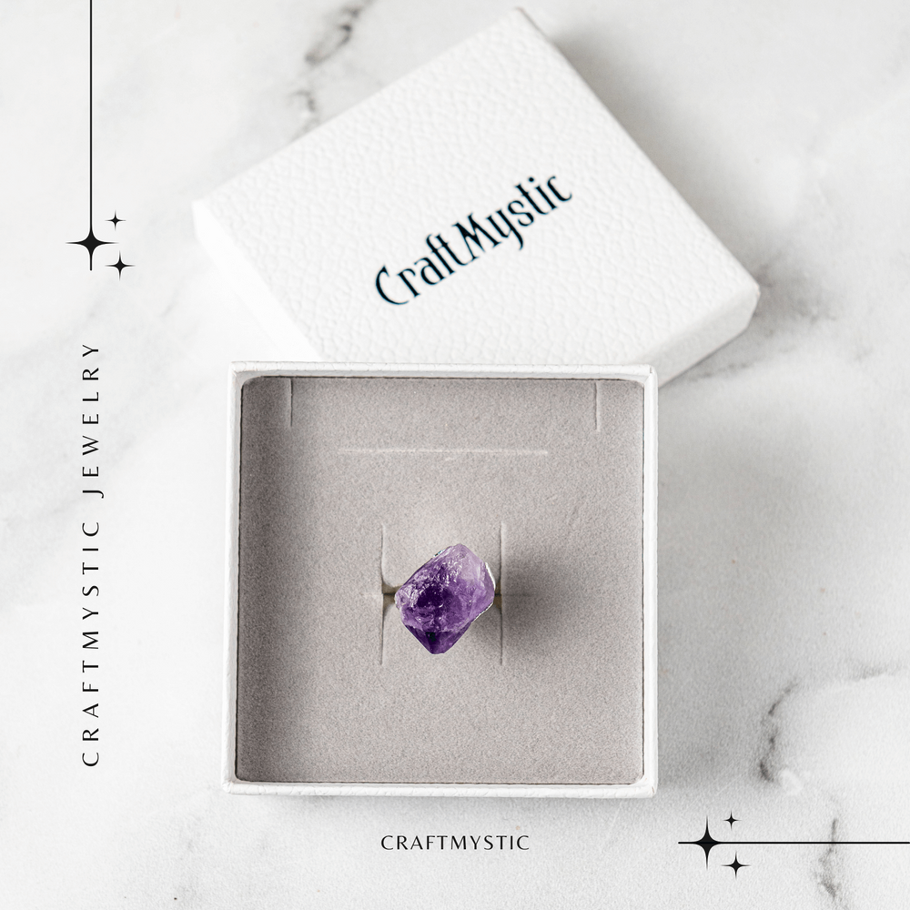 Fiecare piatră de Ametist este lucrată manual, ceea ce face ca fiecare inel să fie unic. Pot exista mici diferențe de culoare și textură față de imaginile prezentate, oferind fiecărei piese un farmec distinctiv și autentic. Produsul va fi livrat într-un săculeț de catifea sau o cutie cadou, gata pentru a fi oferit.