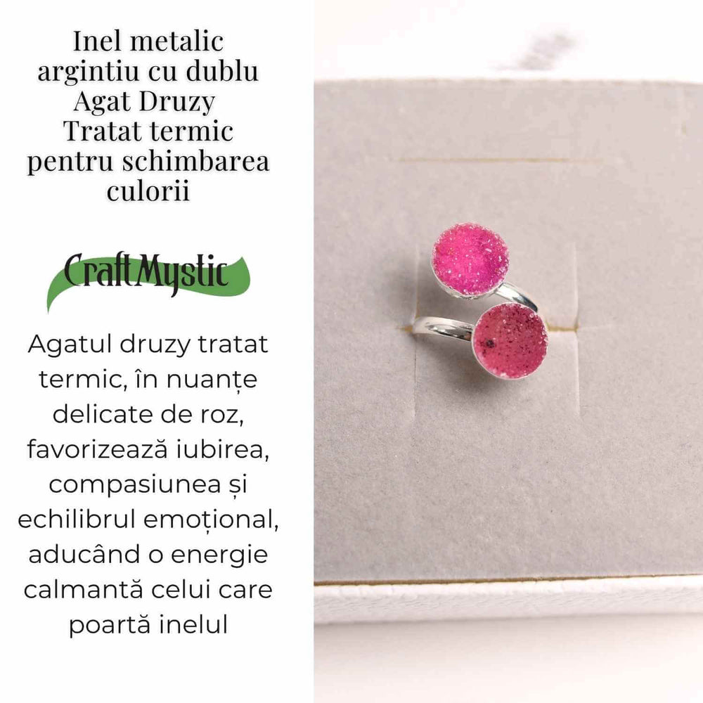 Adaugă acest inel cu dublu agat druzy în colecția ta sau oferă-l cadou pentru a aduce energie pozitivă, eleganță și unicitate în viața celor dragi!