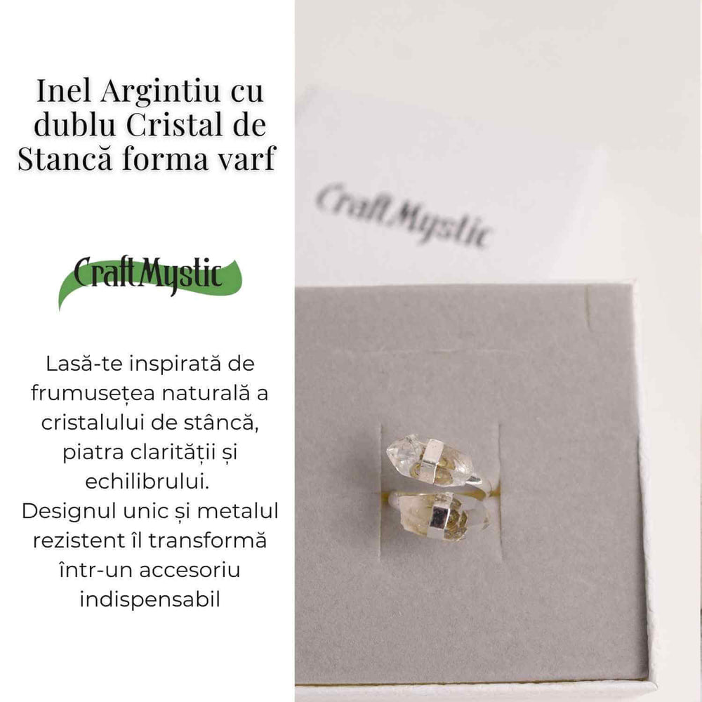 Acest inel reglabil argintiu cu dublu cristal stâncă este un dar perfect pentru persoanele care prețuiesc bijuteriile naturale și pline de semnificație. Oferit ca un simbol al purității și echilibrului, este potrivit pentru aniversări, sărbători sau orice ocazie specială.