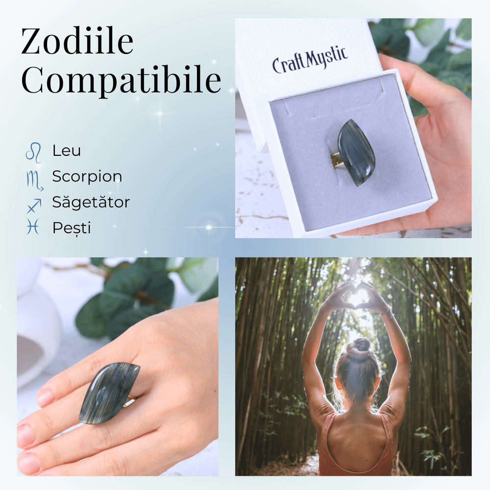 Pietrele naturale utilizate sunt lucrate manual, ceea ce face ca fiecare inel să fie unic. Pot exista mici diferențe de culoare și textură față de imaginile prezentate, oferind fiecărei piese un farmec distinctiv și autentic. Produsul va fi livrat într-un săculeț de catifea sau o cutie cadou, gata pentru a fi oferit.