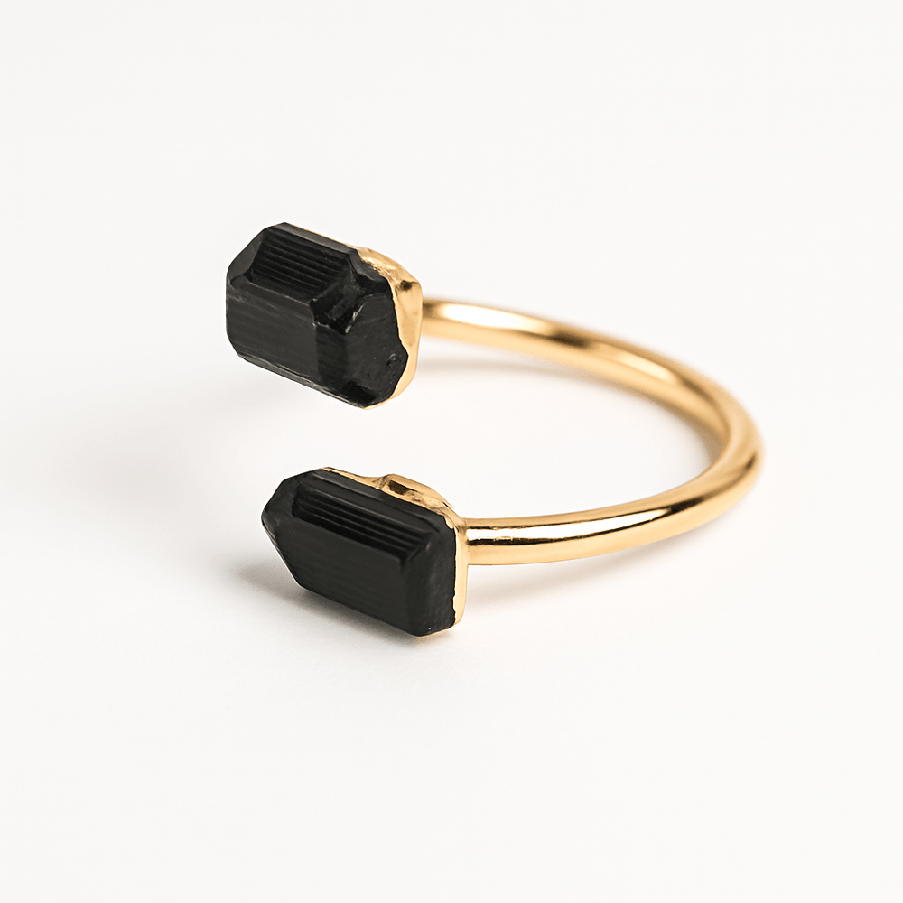 Inel auriu cu dubla Turmalina Neagra, pentru protectie si echilibru