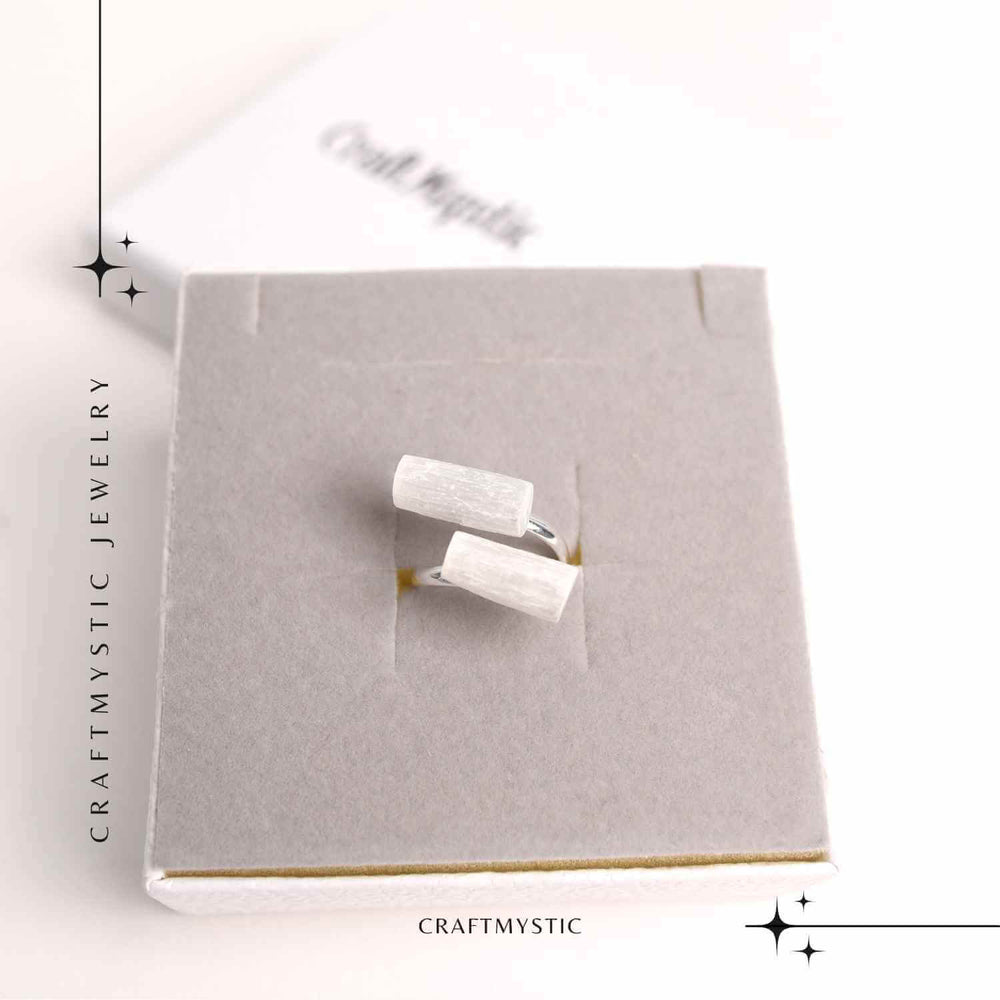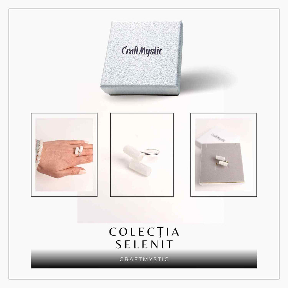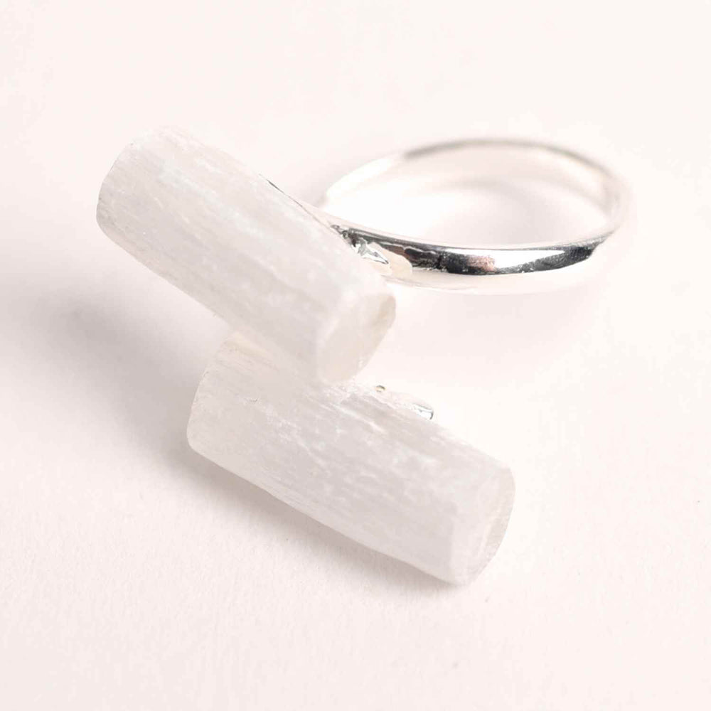 Inel Reglabil Argintiu cu Dublu Selenit, Claritate si Purificare