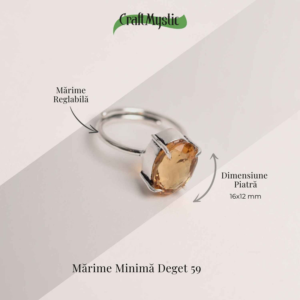Inel Reglabil cu Citrin Natural Fatetat pentru Energie Pozitiva
