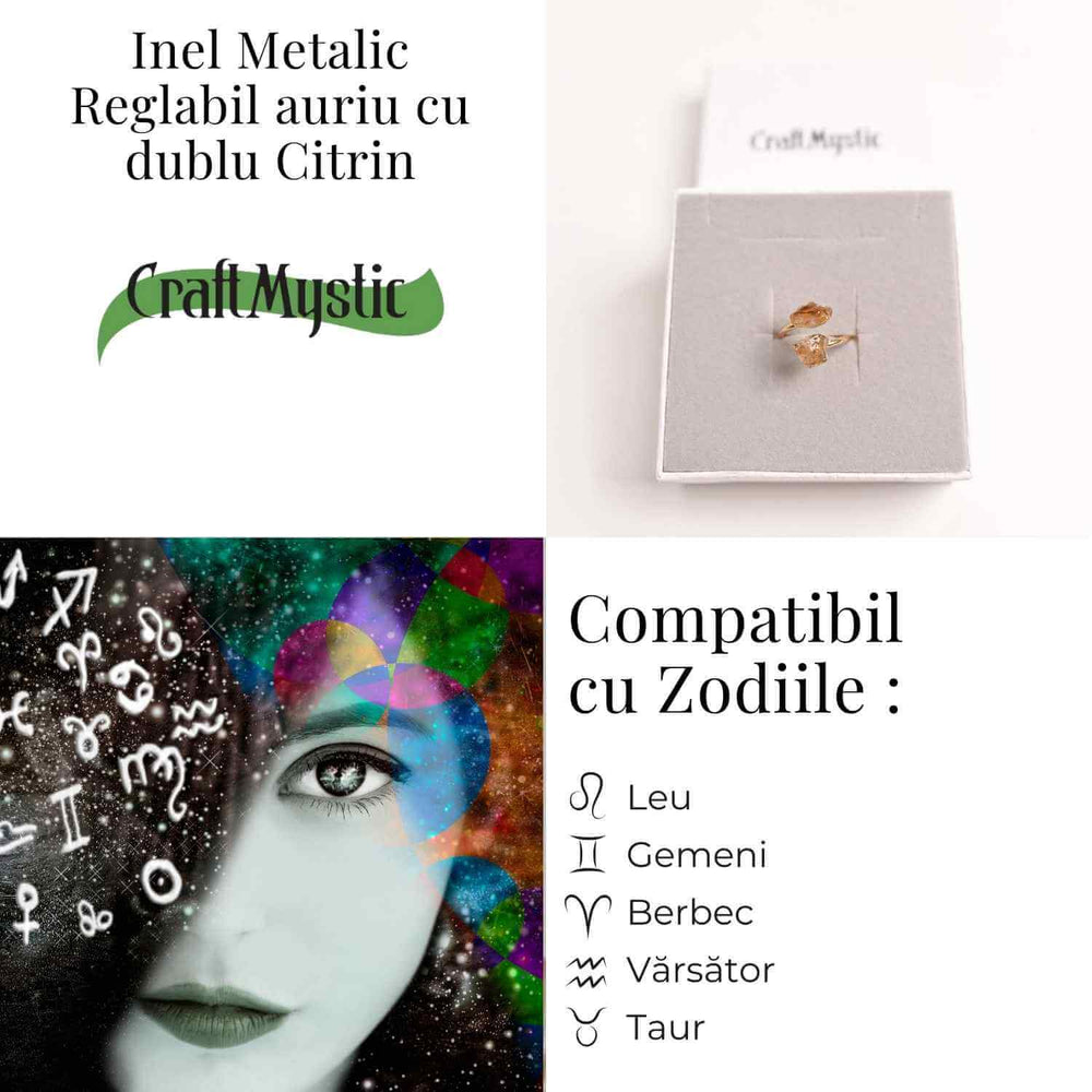 Semnificația inelului cu dublu Citrin: Acest inel cu dublu Citrin este mai mult decât un simplu accesoriu – este un talisman puternic pentru atragerea prosperității și a energiei pozitive. Fiecare piatră naturală de Citrin amplifică beneficiile legate de abundență, oferindu-ți o conexiune mai profundă cu energia creativă și optimistă din viața ta.