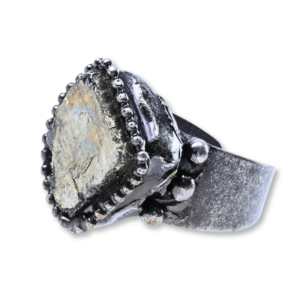 Inel Vintage Ajustabil cu Piatra de Pirita pentru Succes