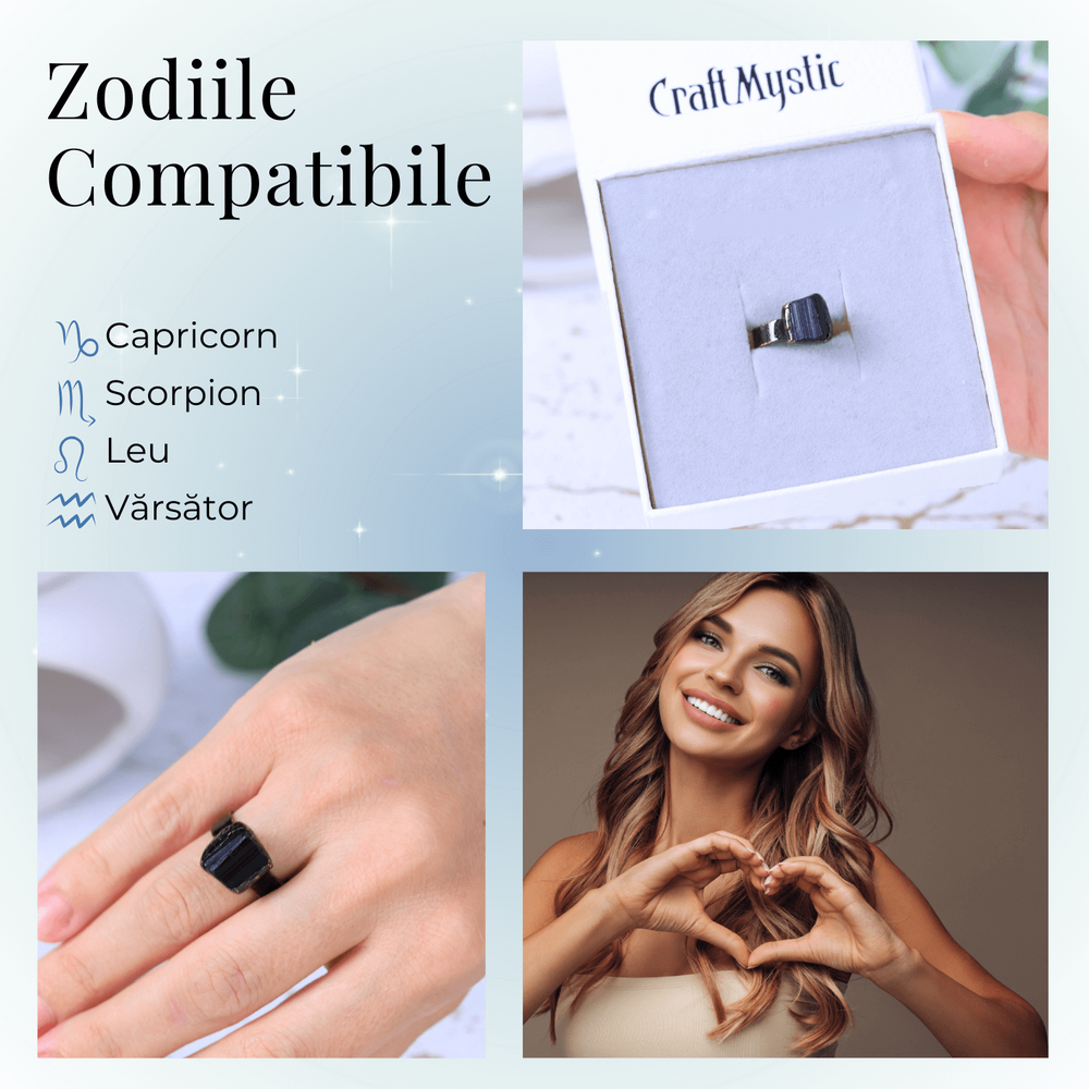 Fiecare piatră de Turmalina Neagră este lucrată manual, ceea ce face ca fiecare inel să fie unic. Pot exista mici diferențe de culoare și textură față de imaginile prezentate, oferind fiecărei piese un farmec distinctiv și autentic. Produsul va fi livrat într-un săculeț de catifea sau o cutie cadou, gata pentru a fi oferit.