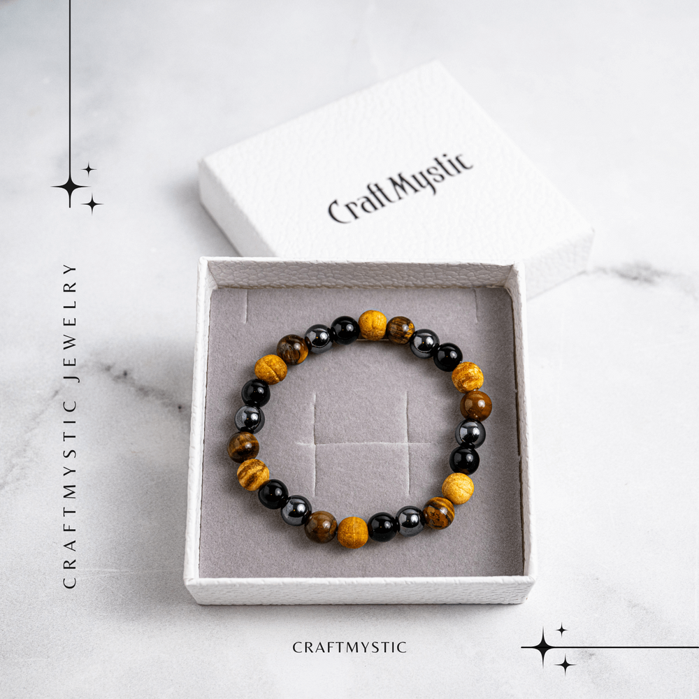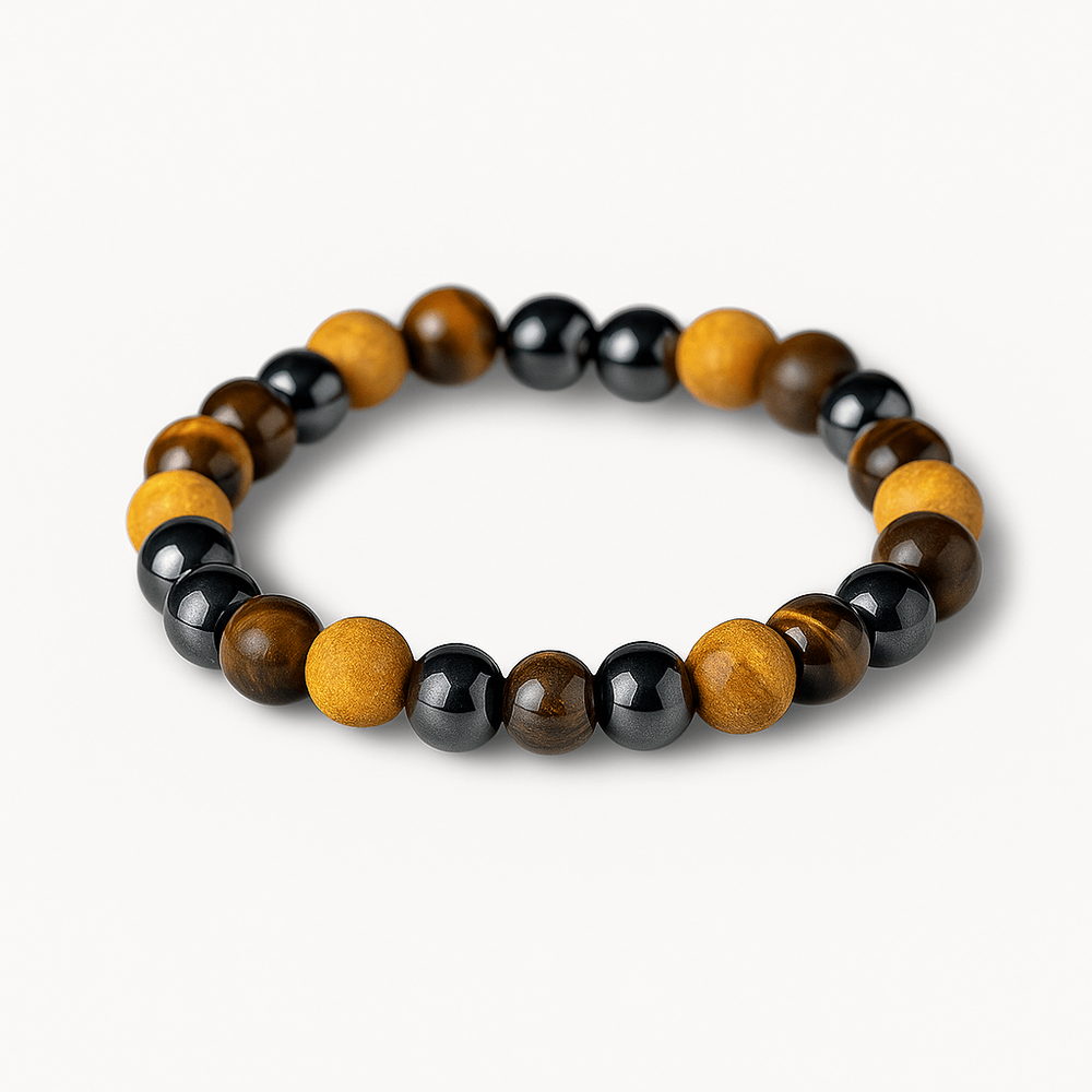 Hematitul aduce stabilitate, obsidianul înlătură blocajele energetice, iar ochiul de tigru echilibrează emoțiile și stimulează încrederea în sine.