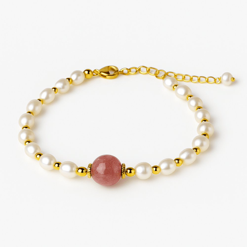 Descoperă acum secretul unei iubiri pure și blânde – o brățară absolut unică cu Cristal Căpșună și Perle naturale, pentru inimă deschisă și feminitate radiantă!
