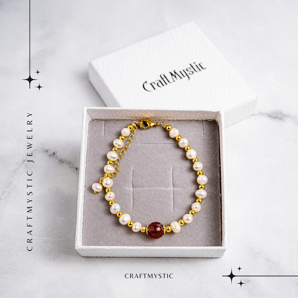 Bijuterie a Inimii Deschise – Bratara cu Cristal Capsuna si Perle