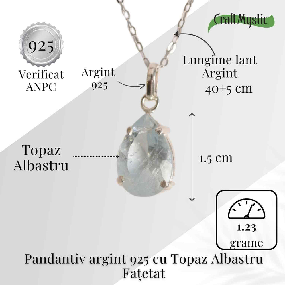 • Piatra: Topaz Albastru fațetat în formă de lacrimă, naturală