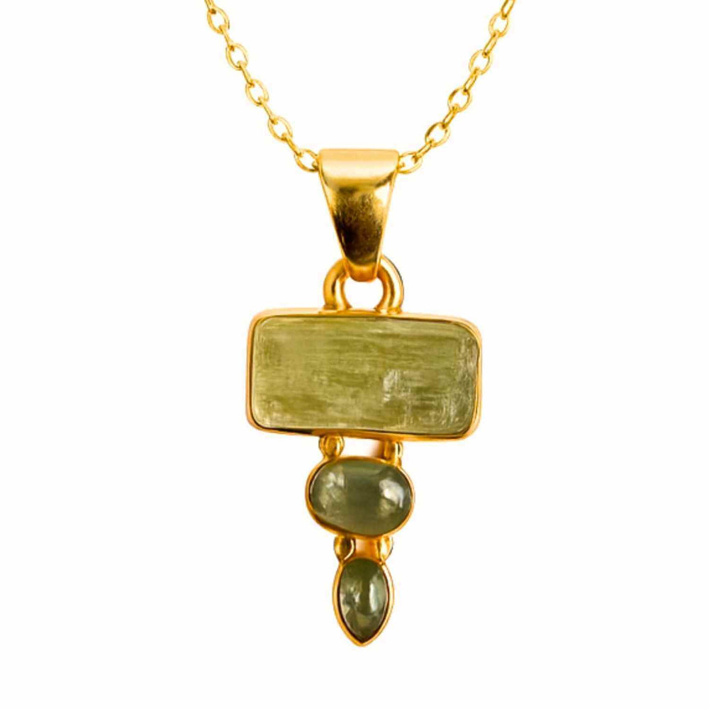 Echilibru si Vindecare Emotionala – Colier inox si pandantiv argint 925 placat cu aur de18k si Triplu Kyanit Verde