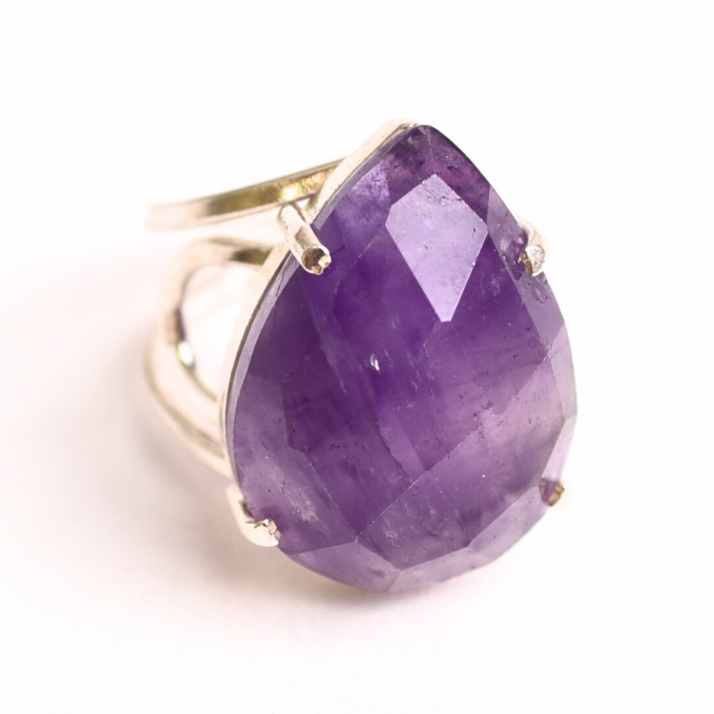 Inel Ajustabil Argint 925 cu Ametist Fatetat – Echilibru si Claritate Mentala