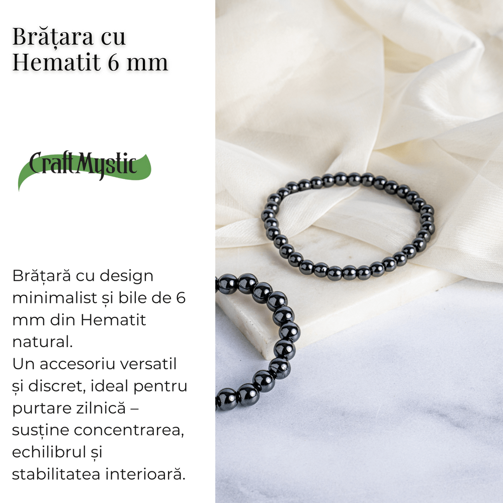 Putere si claritate – Bratara elastica cu pietre de hematit 6 mm